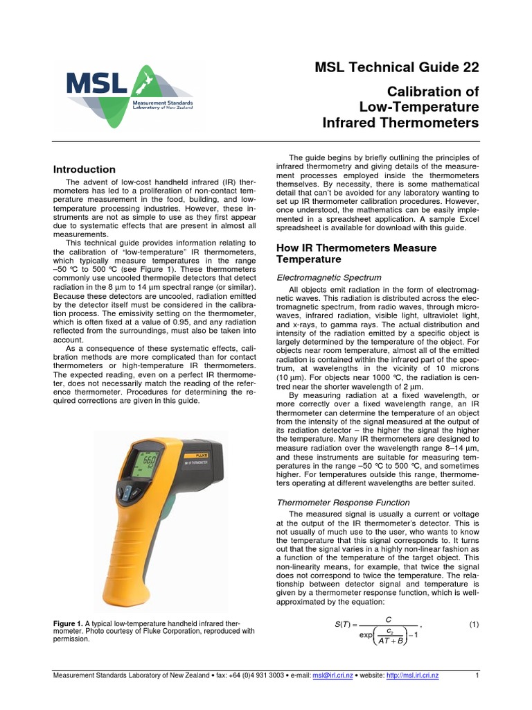 Msl Tech Guide 22 Calibration Infrared Thermometer Pdf Infrared Thermometer